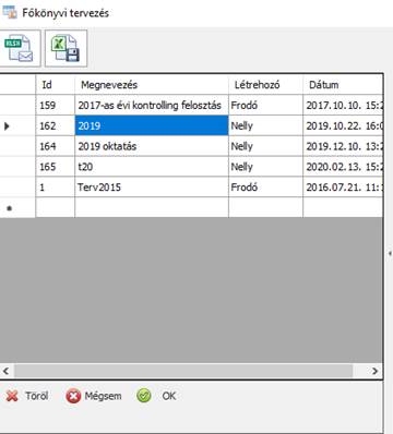 Az főkönyvi tervezés segítséget nyújt a terv- és tényadatok összehasonlításához (főkönyv – vegyes, bér, 13. dekád, stb.). Az adatok betölthetők Excel fájlból. Kézi felvitelre a Kontrollingban nincs lehetőség.