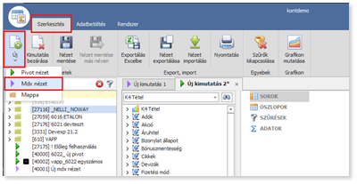 Pivot nézet a Szerkesztés/Új/Pivot nézet menüpontból indítható.