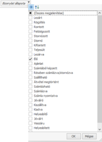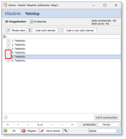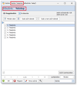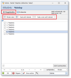 Az előszűrés ablakban már csak azok az elemek jelennek meg, melyek tartalmazzák beírt előszűrési feltételt.
