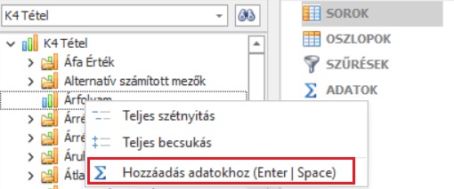 A csoport névvel azonos megnevezéssel választható ki maga a tényadat, jelen esetben az árrés