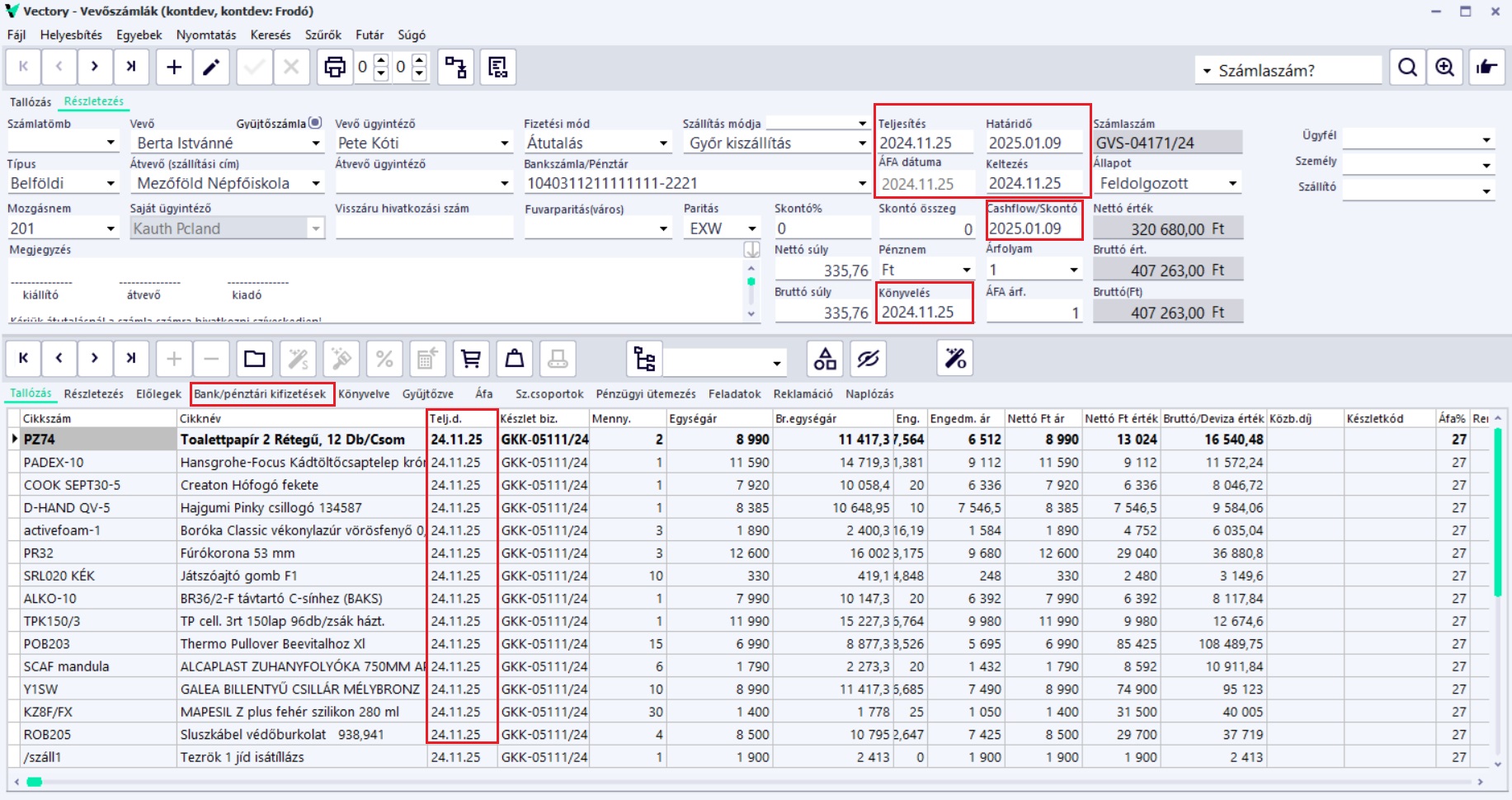 - Vectory készletbizonylatok ügyfél mező tartalma