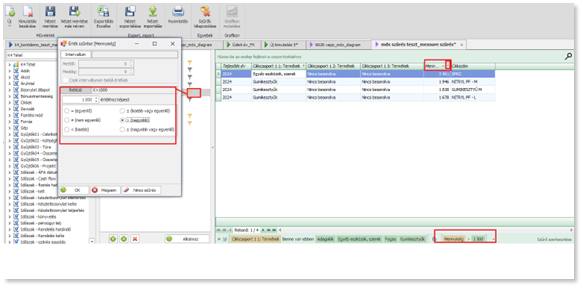 (Az így végzett szűrés már közvetlenül az MDX lekérdezésbe dolgozik, mentéskor bekerül az MDX lekérdezésbe. Ezt a szűrés kezeli a VAPP, Nézet exportálás (xml), Nézet importálás(xml))