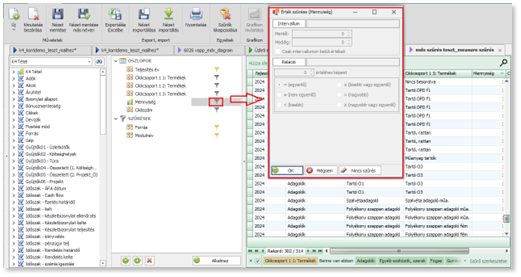 Mindkét szűrési típusnál az OK gomb rögzíti az ablakban beállított szűrést. Ezután az összeállító felület Alkalmaz gombjára kattintva a szűrés életbe lép a táblázatban.