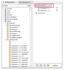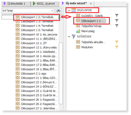 Sorokba és Oszlopokba kiválasztott mezők sorrendjében tartsunk be egy hierarchiát. Nagyobb halmaztól haladjunk a kisebb halmaz felé. (pl.: Telephely, Raktárcsoport, Raktár, vagy Cikkcsoport,Cikk, Készletkód)