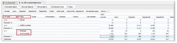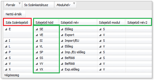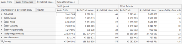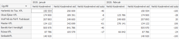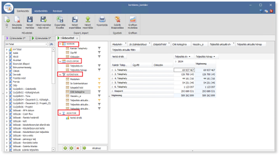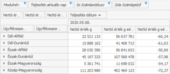 pl. nettó érték g, egy adott időszaktípusra göngyöli az értéket. Előző éves adatokkal is megjeleníthetőek.