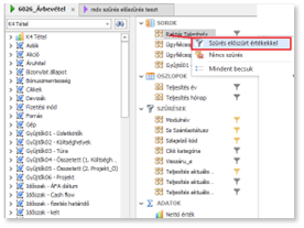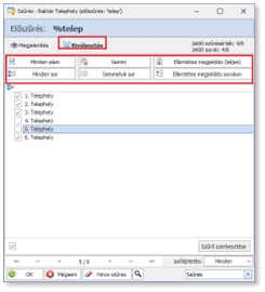 Az Előszűrésnél a Szűréshez képest van egy további funkció, mely további szűrési műveleteket hajt végre, amennyiben a kiválasztott mezőn esetleg már eleve alkalmaztunk egy szűrést korábban