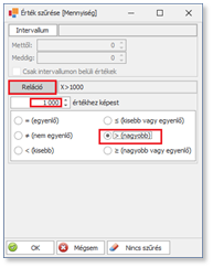 Érték szűrésénél intervallum vagy reláció adható meg.