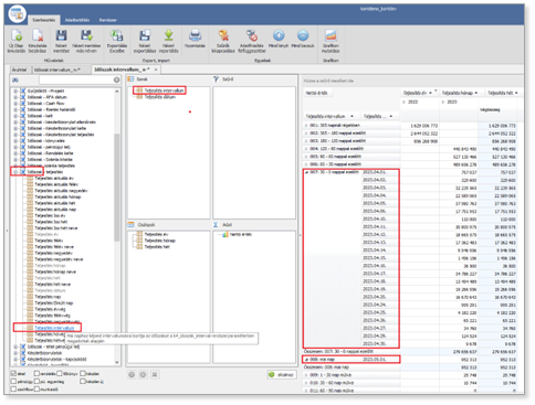 - Milyen időszak típusra akarjuk a kimutatás eredményét megjeleníteni (teljesítés, kelt, fiz. határidő stb).