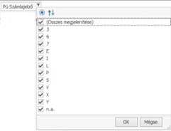 Az OK gombra kattintva felugrik a Szűrés ablak, ahol fent egy információs sorban látható, melyik mezőről indítottuk a szűrést, illetve milyen előszűrési feltételt adtunk meg előzőleg.