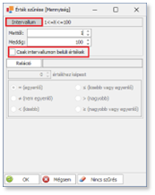 Az Intervallum gombra kattintva megadható, hogy intervallumként megadott érték is szerepeljenek a szűrésben vagy ne.