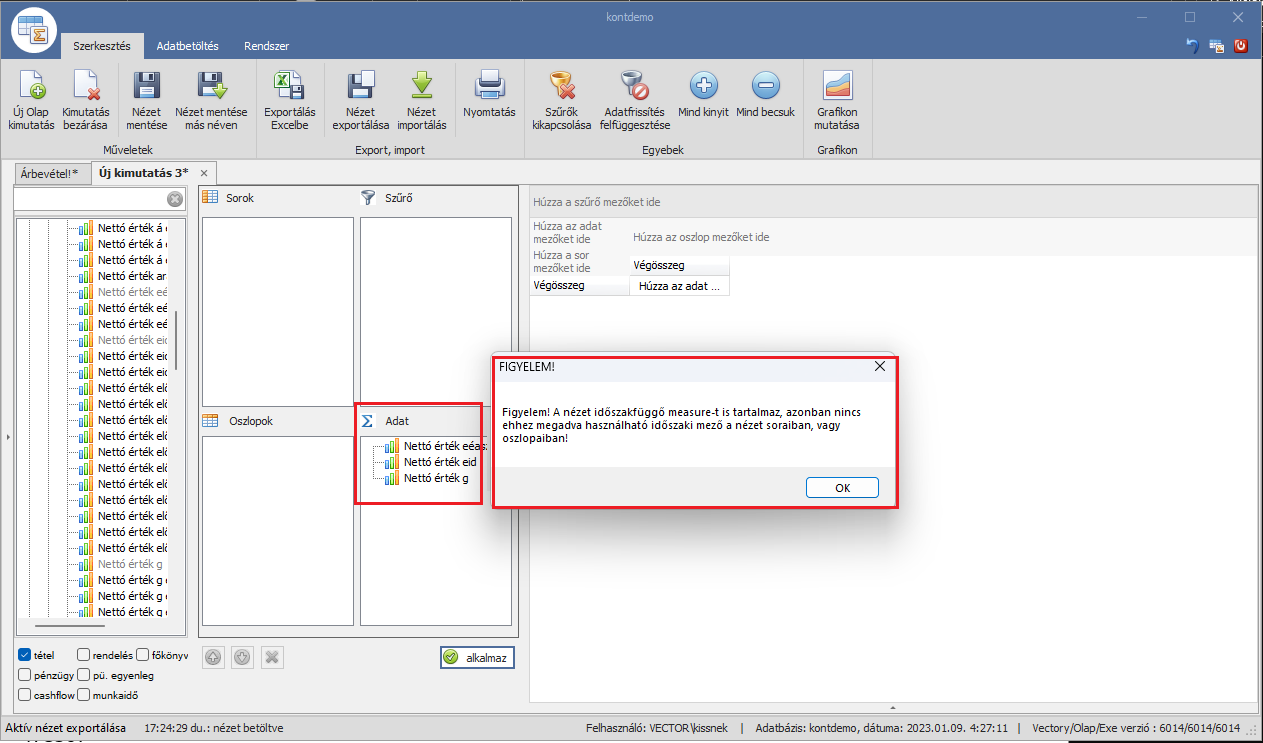 Mindkét paraméter beállításához kérje segítségünket Terméktámogatás oldalunkon, a használathoz az OLAP kocka újjáépítése javasolt, ami a Vector Kft. dolgozói által végezhető el!