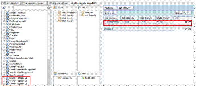 Tétel tematikában érhetők el Személy - Igazoló L1 és Személy - Igazoló L2 dimenziónévvel az Igazoló lapon található kis igazolók.