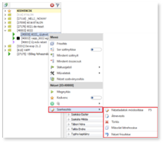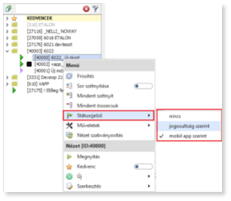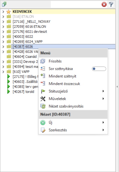 A helyi menük elérése a funkciók jellege szerint csoportosítva lett. A csoportosítás érinti Mappa struktúrák, Összeállító felület és a kimutatás megjelenítő ablakrészek helyi menüit. Nézetről indítva a menüsort, helyet kapott a nézet háttér azonosítója is id kezdettel.