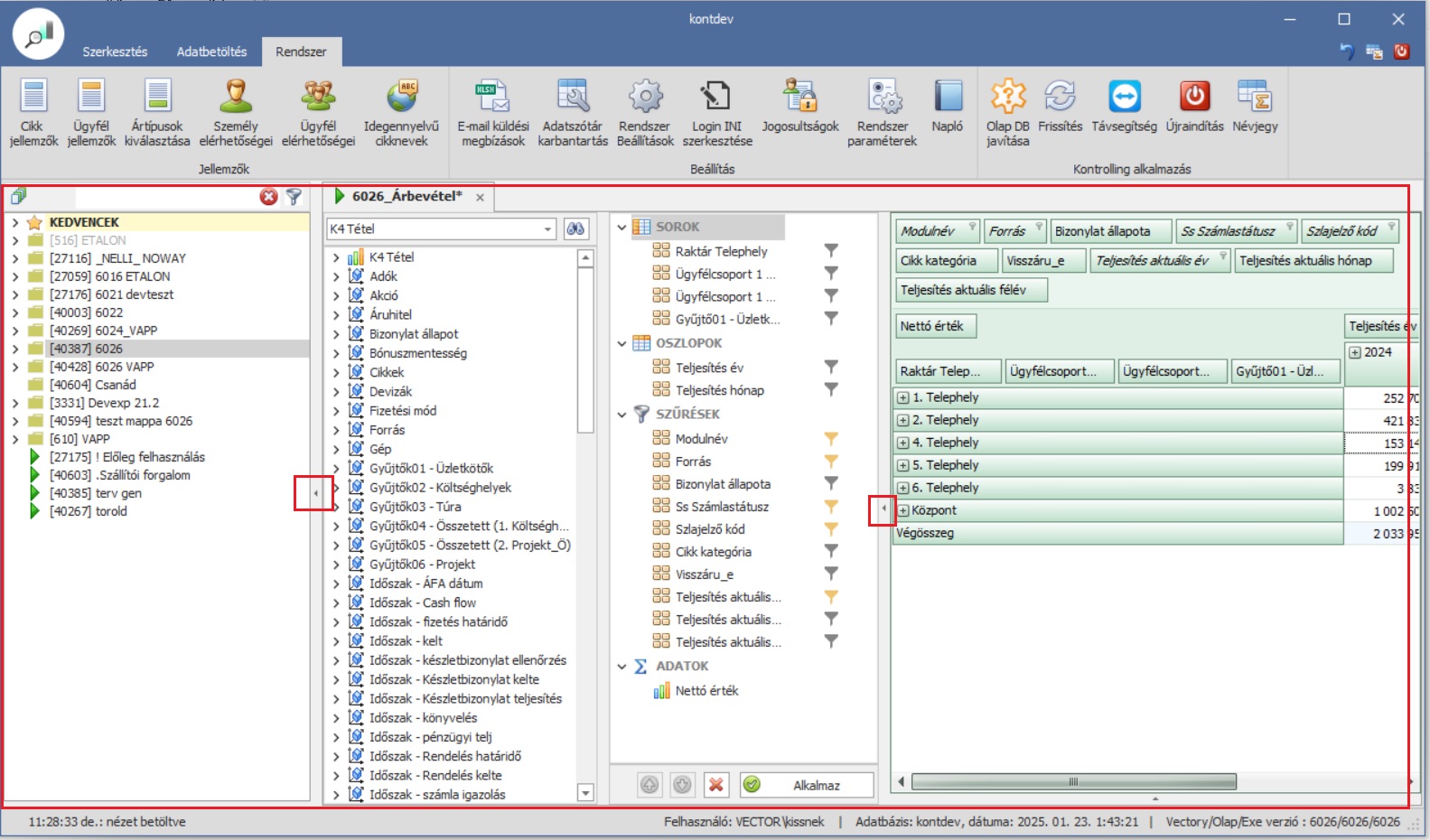 - szűrhető az OLAP alapú kontrolling illetve SQL tárolt eljárás alapú nézetek