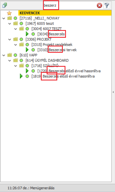 - Szűrési lehetőség kimutatások elérési útvonalának megkeresése
