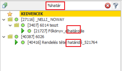 - kedvencként jelölt, illetve nem kedvenc státuszú kimutatások szűrése