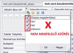 Havi szűrés nem alkalmas heti adatok lekérdezésére, illetve heti szűrés nem alkalmas a havi adatok megjelenítésére.