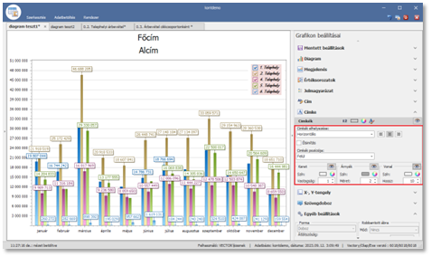 A Jelmagyarázat panel új vizuális elrendezésért és igazításért felelős felületet kapott, amely így átláthatóbb kezelést biztosít. A jelmagyarázat formázása mellett továbbra is elérhető funkciók a jelmagyarázat kikapcsolhatósága, ahol a grafikonon megjelenített adatokat tudjuk elrejteni. A jelmagyarázat panelje mostantól sokkal jobban testre szabható, cím adható a panelnek, szabályozható a színe, valamint annak kerete is beállítható (megjelenítés, szín és vastagság szerint).