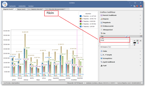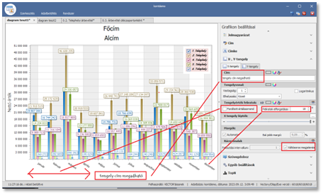 A címek a grafikon elrendezésen jobbra, balra, középre igazíthatóak, illetve formázhatók.