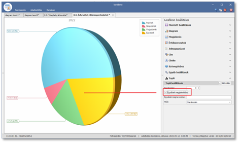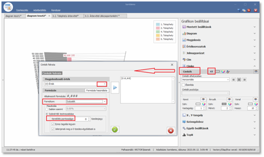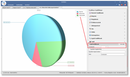 Bevezetésre került a diagram esetén is a felső N elem (TopN) kezelése, amely külön panelt is kapott. Ezt aktiválva megadható, hogy mennyi Top elemet jelenítse meg (Darabszám) a diagram.