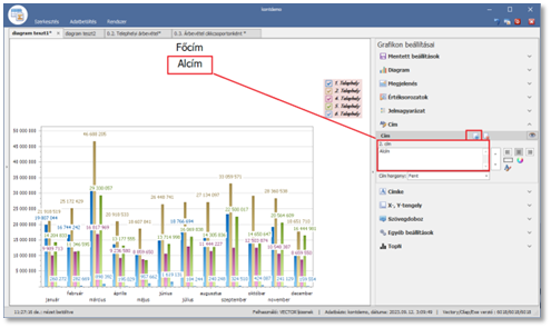 A Cím panel felhasználóbarát elrendezést kapott, mivel a grafikon címe egymás alatti szintekből állhat, így a le-fel léptetéssel váltogathatók a szintek, valamint (a korábbiakkal ellentétben) egyből az 1. szintet kezeli a felület.