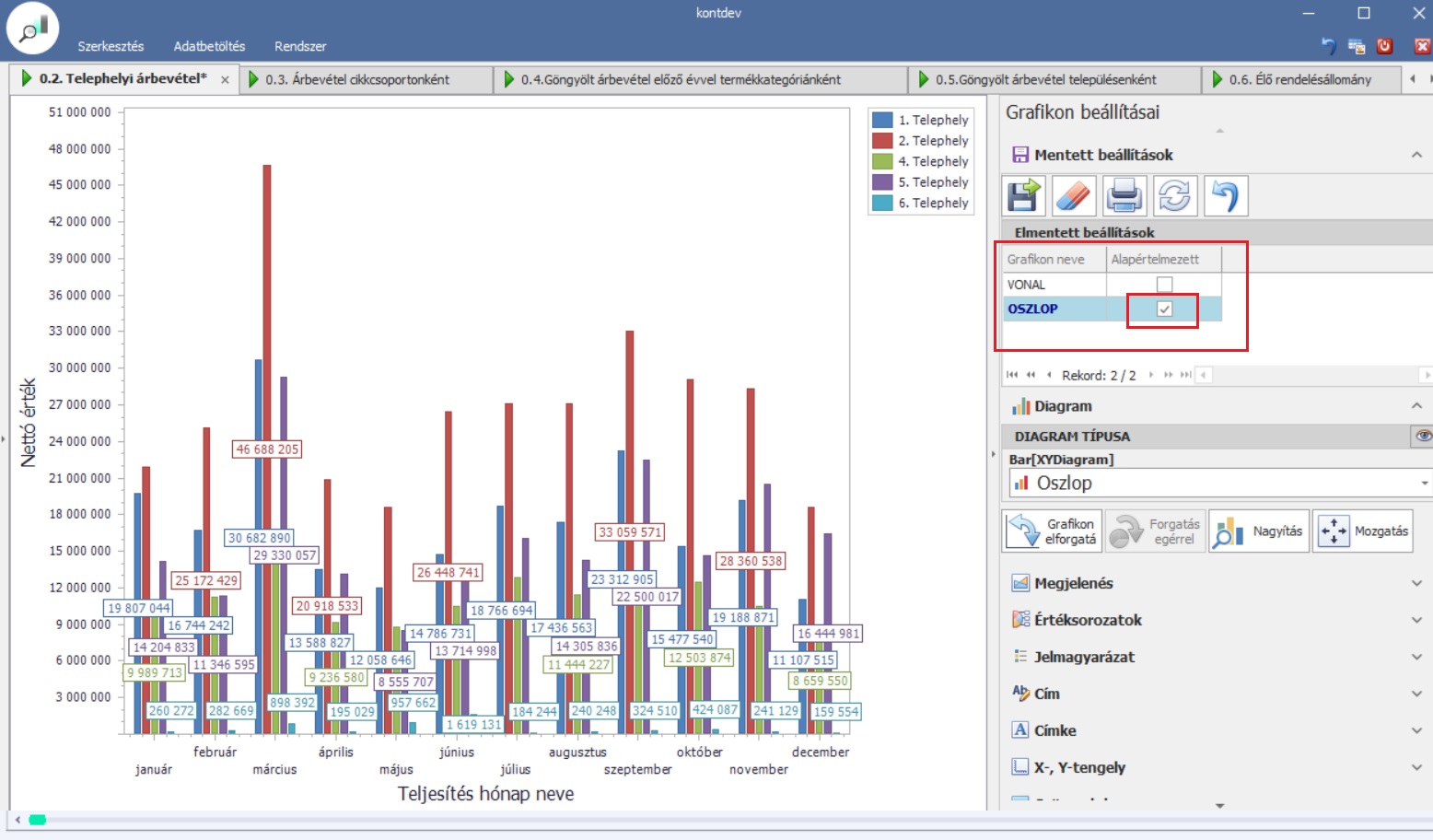 A grafikonok készítése esetén több grafikon megjelenítést is elmenthetünk egy-egy nézethet, és ezek közül alapértelmezetté tehetünk egyet. Az így alapértelmezett grafikon töltődik be grafikonos megjelenítéskor automatikusan.