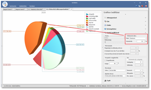 A címke kezelés is megújult, a címkék teljesen testre szabhatók lettek. Állítható mostantól a címke kerete, árnyékolása, valamint vonalazása. A keret esetén megadható annak színe, vastagsága és láthatósága. Az árnyék esetén a láthatóságon túl színt és méretet is állíthatunk. A címkét az egyes grafikonrésszel összekötő vonal esetén szintén megadható annak színe, hossza, illetve láthatósága.