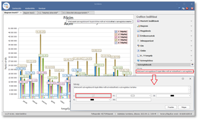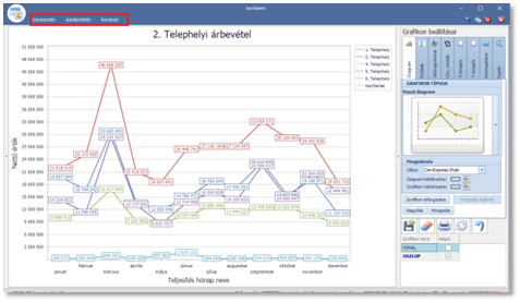 Kimutatások teljes tartalmára, vagy az általunk kijelölt kimutatás részekre grafikon szerkesztése, grafikon sémák mentése.