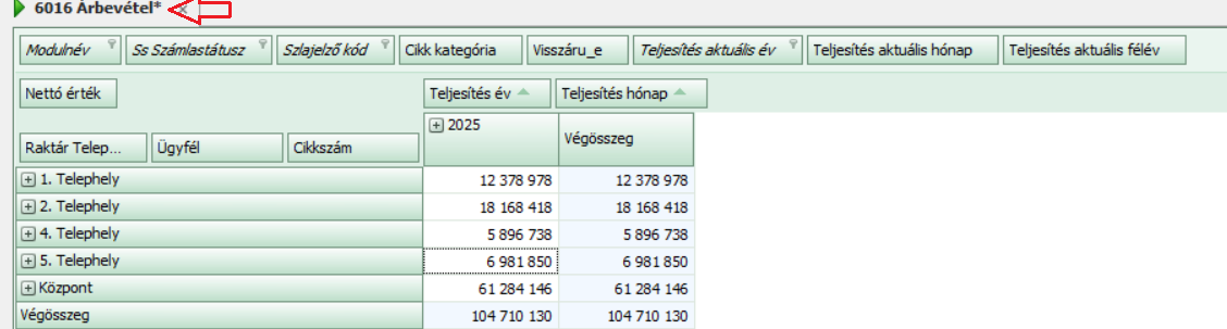 Ha egy korábban mentett kimutatáson módosítást hajtunk végre és a módosítást még nem mentettük el, illetve az új kimutatást még nem mentettük el . A tab fülön látható kimutatás megnevezése mellett egy csillag ikon jelenik meg ebben az esetben.