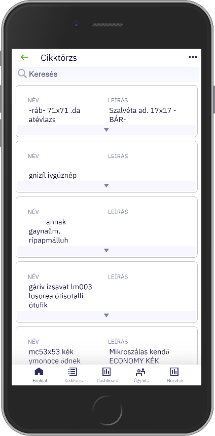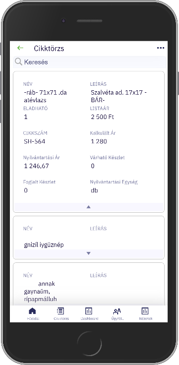 Az alkalmazás kezeli a Kontrolling mögöttes nézeteit is. Azokon a widgeteken, amelyek mögött másik nézet van, egy oldalra mutató nyíl látható. Ezekre röviden koppintva betöltődik a mögöttes, táblázatos nézet.