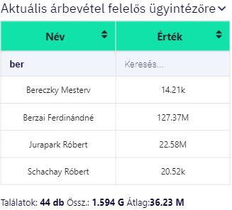 Ezeket a szűrőket csempés nézetben látjuk a komponens megnyitását követően, lapozóval. Rájuk kattintva nyílik meg a dashboardos felület, ahol már a kiválasztott elemre szűrt adatokat fogunk látni.