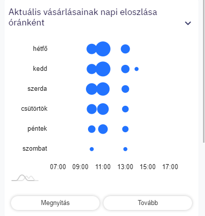 A diagramok lenyitása után három gomb is megjelenik. A Megnyitás gombbal teljes képernyőre nagyíthatjuk a diagramot. A Tovább gomb a diagramhoz tartozó mögöttes nézetet jeleníti meg, ha van hozzá. A Bezárás gomb összecsukja a widgetet.